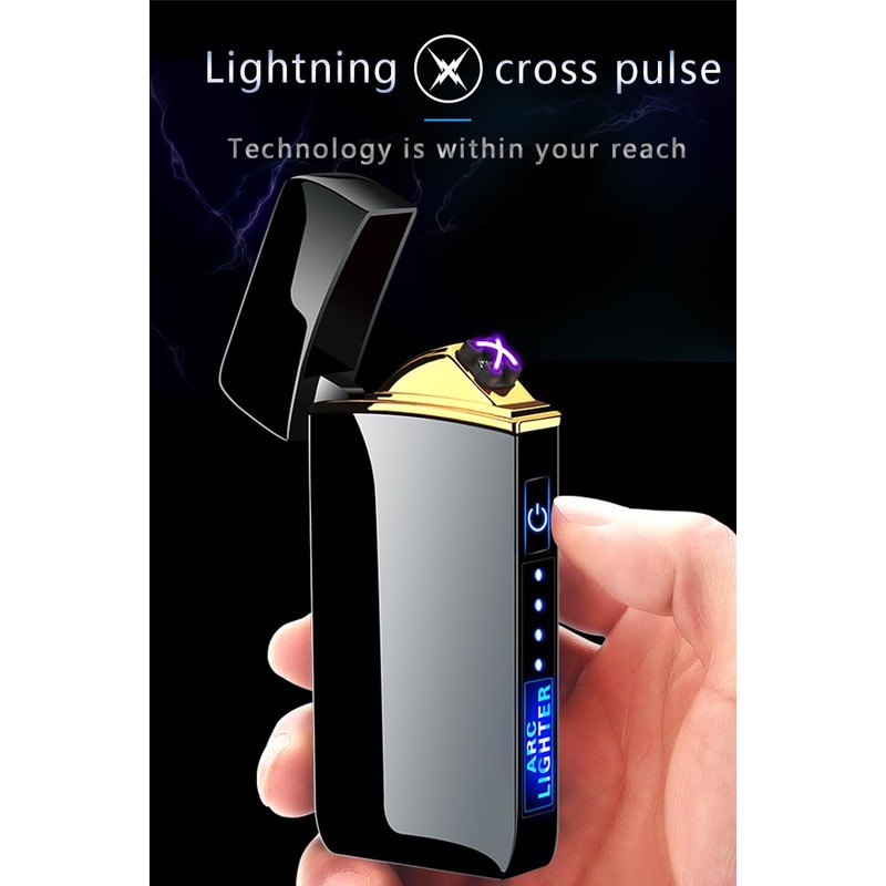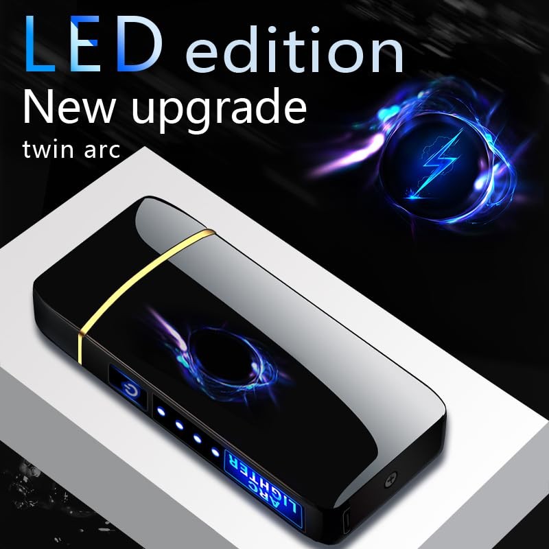 Electric lighter, USB charging lighter, Double arc plasma lighter, windproof flameless electronic lighter, Pocket metal lighter, LED battery indicating candle, incense, camping, black
