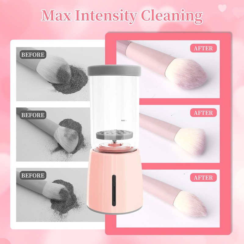 - 【High Power Deep Clean】A true lifesaver for anyone who washes brushes. Dermatologists recommend cleaning your cosmetic brushes at least weekly, ——say goodbye to breakouts and dirty! Our upgraded automatic spinning electric cleaner effortlessly removes makeup residue and cosmetic buildup, leaving your brushes fresh and ready for your next beauty routine.