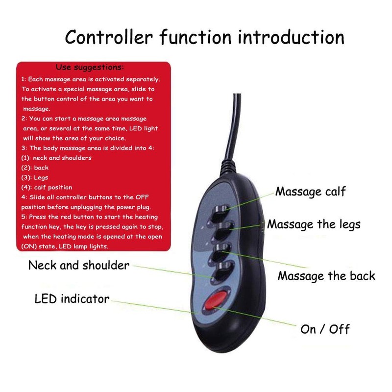 - soothing heat - choose massage pad heating, heating muscle aimed at the waist area to soothe and relax tense pad, improve blood circulation. (The heat can be turned on without massage).