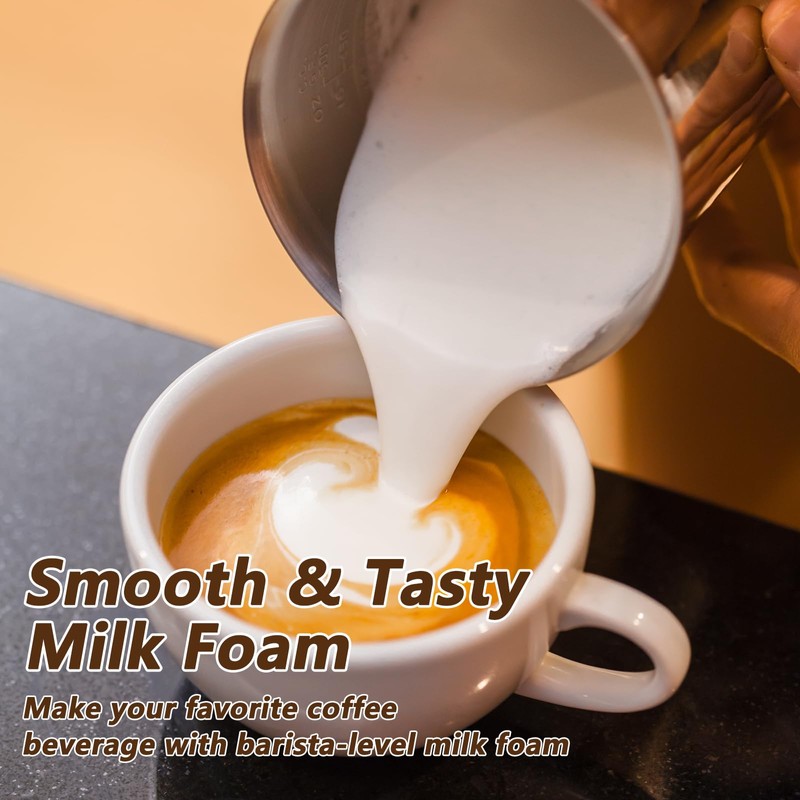 - 【PERFECT CAPACITY OPTIONS】Large capacity 11.8oz (350ml) for heating chocolate or 5.1oz (150ml) of foam chamber for cappuccinos or macchiatos,and 3.4oz (100ml) minimum level for any drink size.