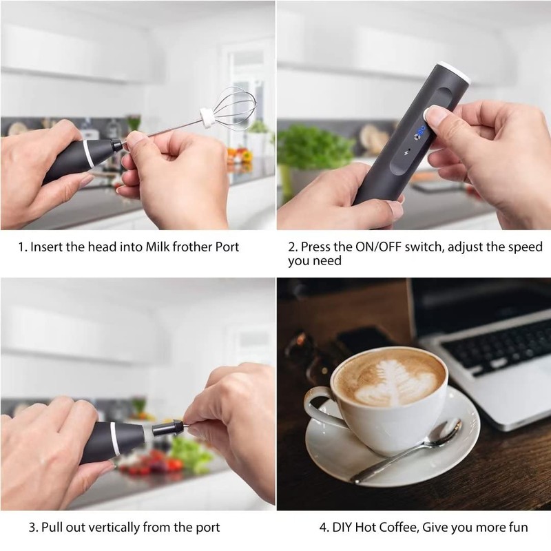- ➤➥Easy to install and use: Insert the head into Milk frother Port, just Pull the head out vertically from the port after you finish using.The electric milk frother has 3 speeds, simply press the button to turn on and pressing the ON/OFF switch in turn to tune the speed from medium to high speed.