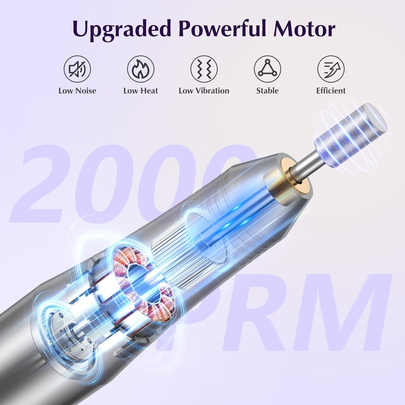 - ❤【Low Noise & Low Vibration & Not Hot】High-quality aluminum body and new upgraded motor, our nail drill can work with low noise, low vibration and low temperature(excellent heat dissipation). Enjoy a quiet nail art time.