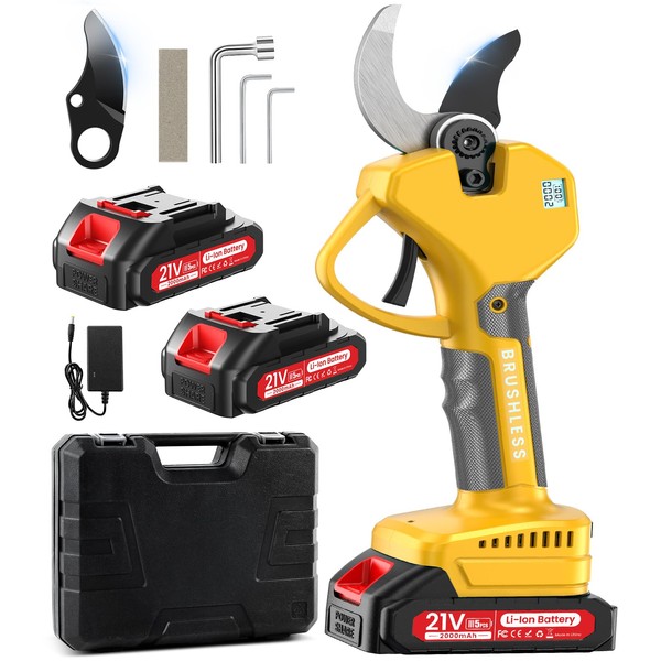 Electric Pruning Shears Cordless Pruner Shears Brushless 2.0 Inch Cutting Diameter with 2 * 2Ah Battery Pruning Shears Garden Tool for Tree Trimming Branch Cutter