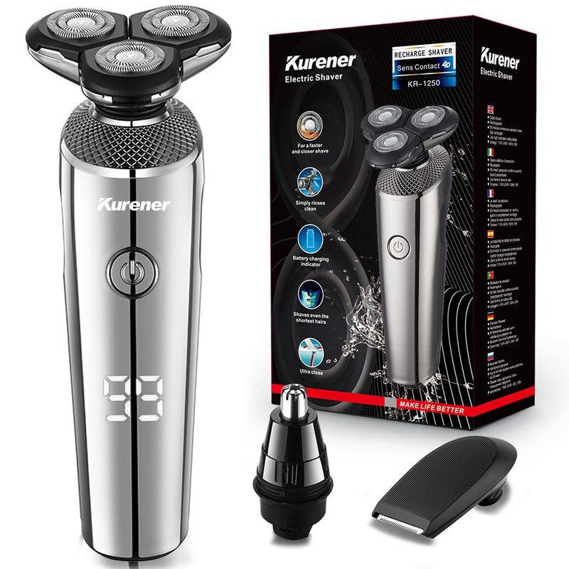 Electric Razor for Men, Kurener Electric Shaver for Men, Rechargeable Wet/Dry Shaver with Nose Trimmer Sideburns Trimmer