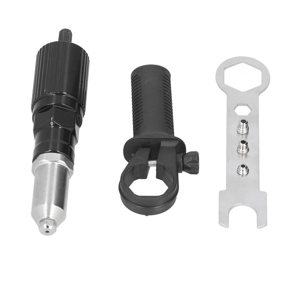 1、Carbon Steel Forging: This electric rivet gun adapter is forged with carbon steel, which has high working strength, high hardness of the gun head, durability, and time saving and labor saving. 2、3 Claw Nail: This electric rivet gun adapter is not easy to slide back to the nail, fast and efficient, 3 claw nail anastomosis design, 360 degree nail scraping, smooth riveting without burrs, and 3 piece structure not easy to jam. 3、ABS Handle: The handle of the adapter is made of ABS, with anti skid lines, and is not easy to slip when held vertically. 4、Stable Riveting: Lightweight and portable rivet gun adapter, stable and firm riveting, fast rivet pulling, not easy to slip, and easy to install. 5、Application: This is an electric rivet gun adapter suitable for door and window production, electrical air conditioning, aluminum alloy riveting, automobile manufacturing, etc.