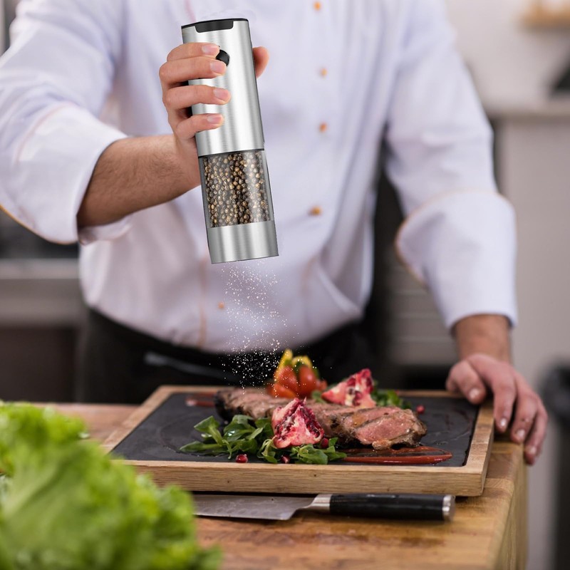 - 【Adjustable Coarseness Pepper Grinder】Easy one-handed operation, easily twist the knob to achieve your desired level of coarseness. Electric salt and pepper grinder features 5 adjustable levels, effortlessly meeting diverse cooking demands and helping you create richly flavored dishes for family. Automatic salt and pepper grinder kits are more convenient than traditional manual grinder kits