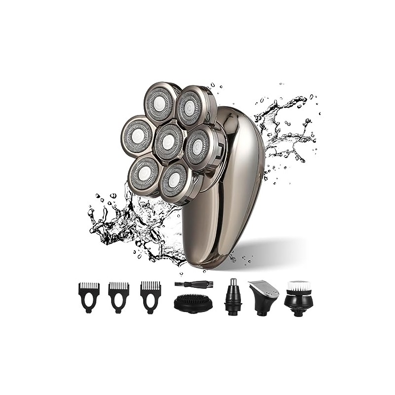 1 x electric shaver 1 x hair clipping head 3 x 3/5/7mm barber comb 1 x nose hair trimming head 1 x face cleansing brush 1 x face massaging head 1 x connecting shaft 2 x protective cover 1 x USB charging cable 1 x small cleaning brush 1 x user manual