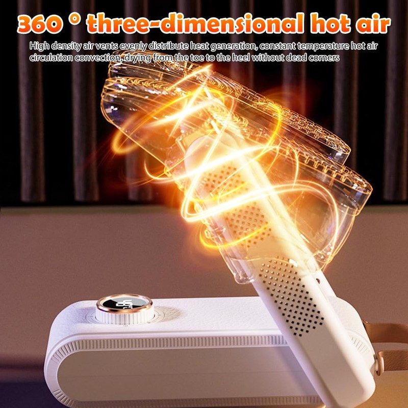 - 【360° Hot Air Circulation for Thorough Drying】 - Our electric shoe dryer uses a dual-core heating element and advanced thermal convection technology to dry your shoes evenly and efficiently. Thanks to the 360° hot air circulation, even the toes and heels are dried without blind spots. With the constant temperature control at 55-60°C, the shoe warmer protects your shoes from overheating and keeps boots, trainers and leather shoes in the best condition.