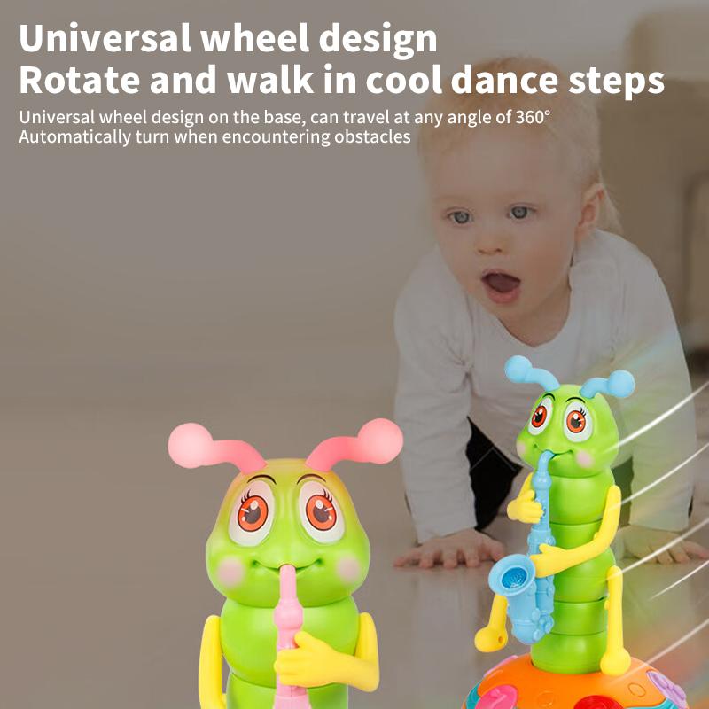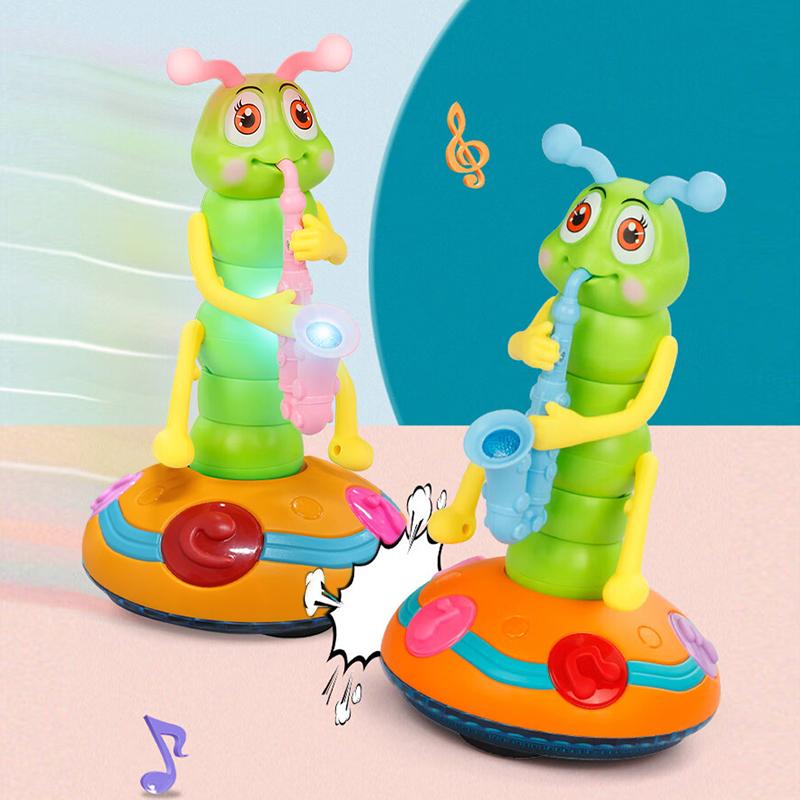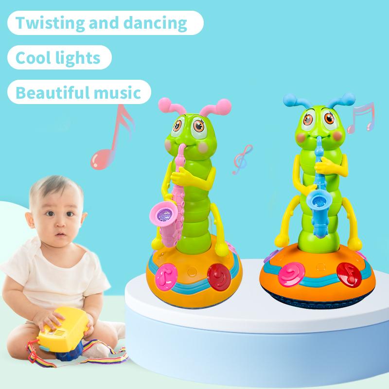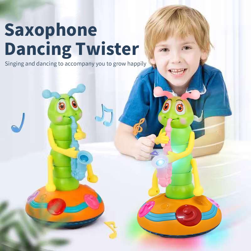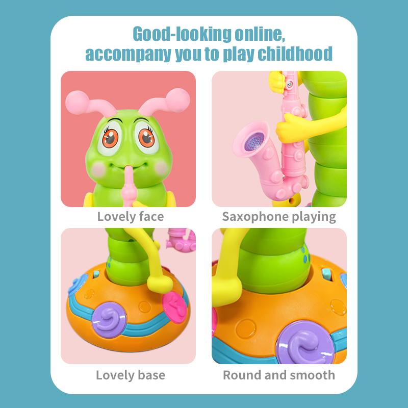 Electric Singing Twisting Worm Music Light Caterpillar Playing Saxophone Universal Toy - Color: Pink
