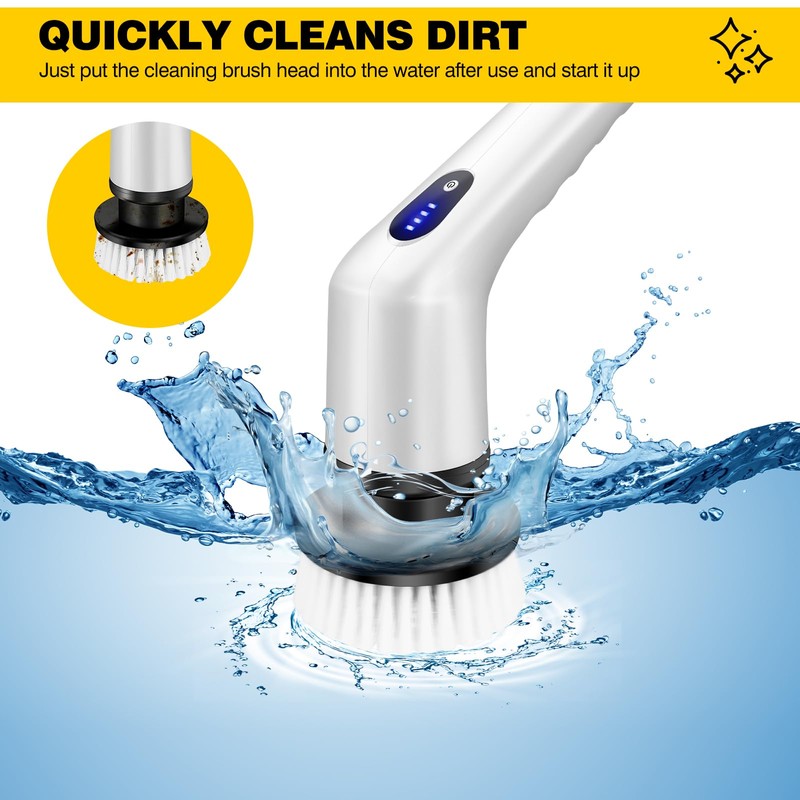 - 【2 Adjustable Spin Speeds Modes】: Electric scrubbing brush featuring an upgraded motor, our effective electric cleaning brush reduces cleaning time by up to 80%, 2 adjustable spin speeds, click once, For Normal Clean, click twice, for Deep Clean, one-click switch. Stubborn stains, soap stains, dirt and more will be removed in minutes.