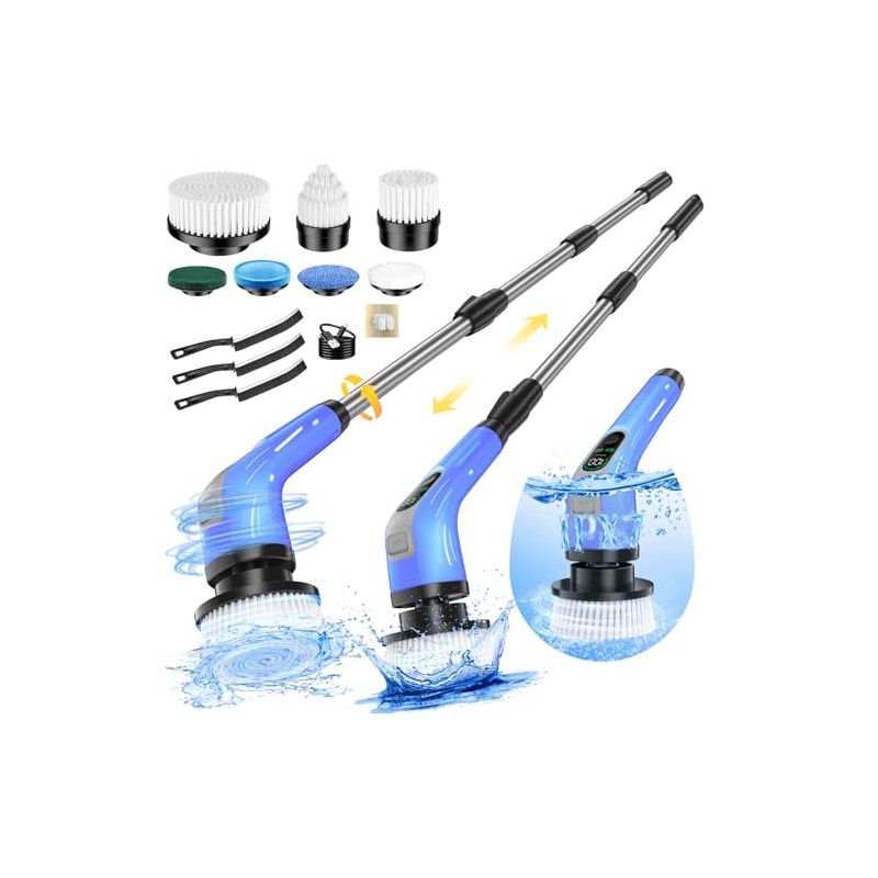 Electric Spin Scrubber, Shower Scrubber with Extension Handle for Kitchen Sky Blue
