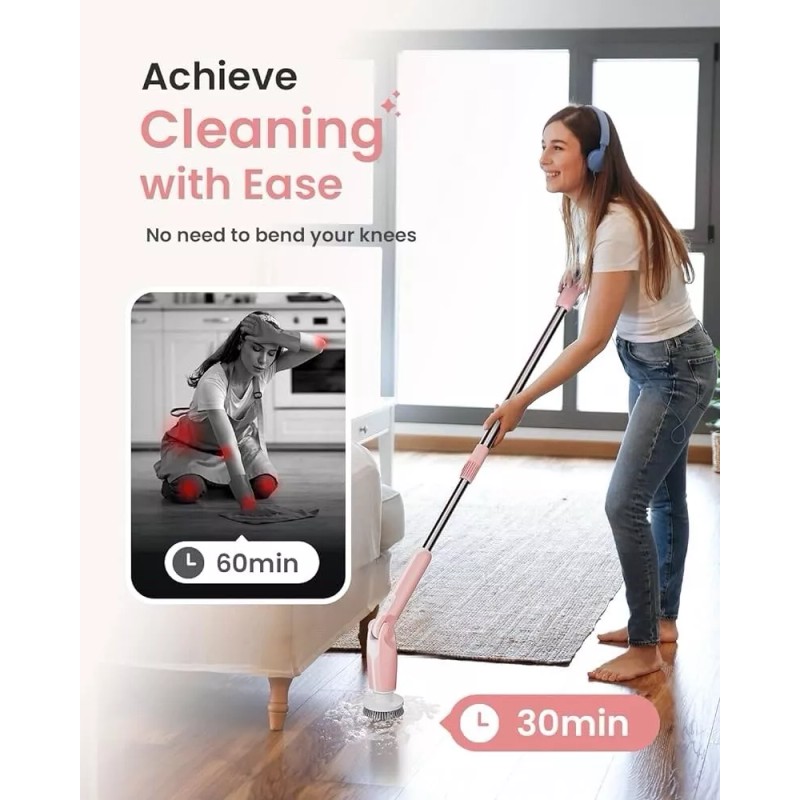 Electric Spin Scrubber, Shower Scrubber with Long Handle & 8 Replaceable Heads,