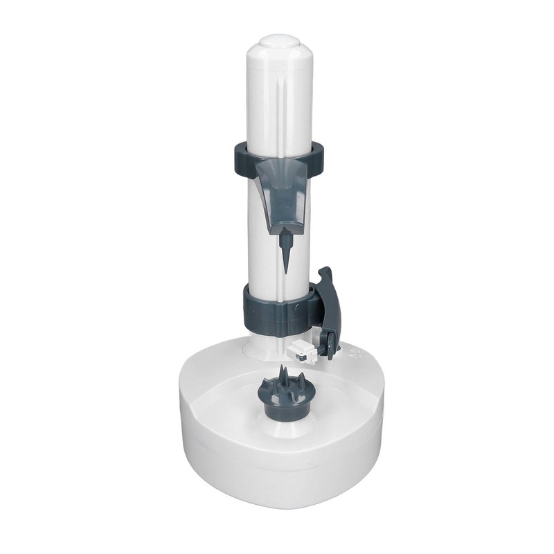 How to Use: Plug in the power or put in 4 AA batteries (Battery not included), fix the fruit or vegetable up and down, press the button and the machine will start peeling automatically.