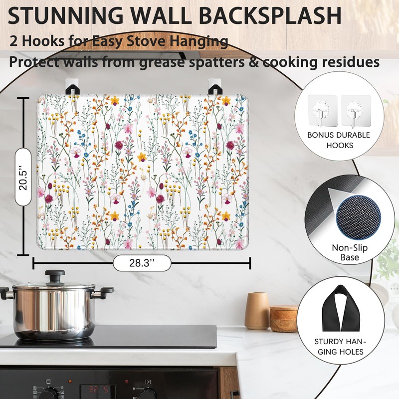 Electric Stove Top Cover,Summer Weeds Flower Heat Resistant Rubber Glass Ceramic Stovetop Protector Mat, Rubber Dish Drying Mat 28.5'' x 20.5''