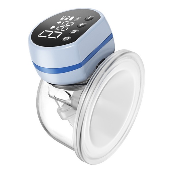 Electric Wearable Breast Pump Hands Free Low Noise 3 Modes 9 Level Powerful Suction LED Screen Breastfeeding Pump Blue