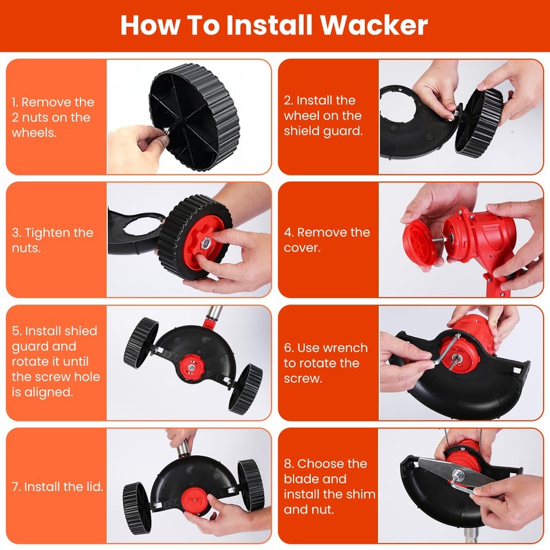 - Cordless String Trimmer With Wheels: Equipped with high-performance 800W brush motor, our multifunctional electric grass wacker achieves up to 18000rpm superior no-load speed and about 50dB low noise, ensuring high working efficiency on trimming yards, shrub, flower bed, roadside areas and even park. Moreover, detachable wheels make it easily to convert from a grass trimmer to a wheeled lawn wacker, relieving the fatigue of long-term lifting and offering a more comfortable gardening experience