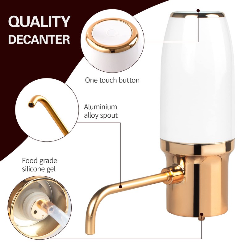 - Easy To Use and Clean -- Connect the hose to the Wine Pourer, insert it into a bottle of wine and press the button on the top. Easy to clean, tubes into clean water and press the button, finish cleaning when the water becomes clean, Safe and simple.