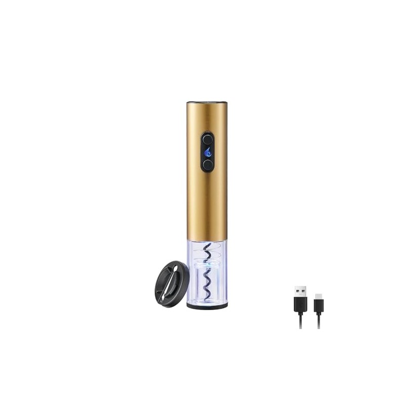 Electric Wine Opener, Rechargeable Wine Bottle Opener with Foil Cutter and Indicator Light, Cordless Wine Corkscrew Remover, Automatic Wine Opener Gifts (Gold)