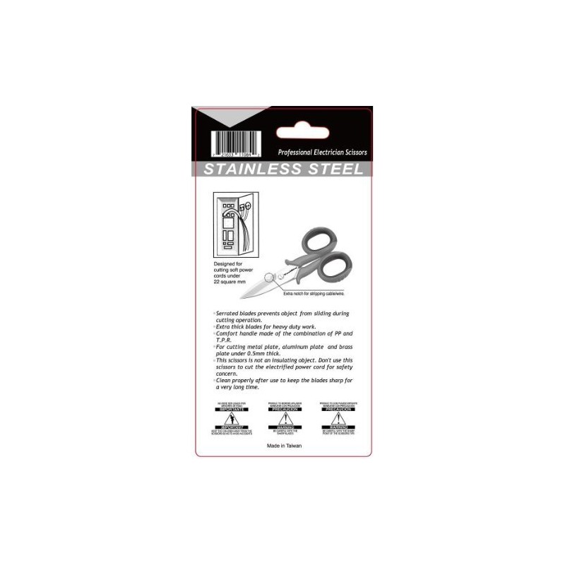 - Stainless steel non-slip serrated blade, notch for stripping cable wire