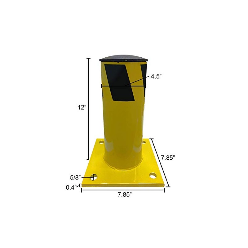 - Pipe Diameter: 4.5" | Height: 12" | Base: 7.85"x7.85"x0.4" | Mounting Holes: 5/8" | Weight: 11lbs