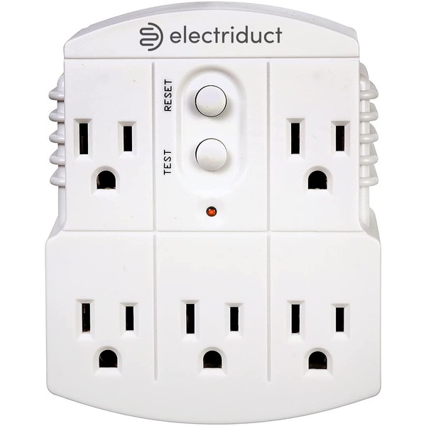 Electriduct 5-Outlet GFCI Wall Adapter, 15 Amp Grounded 3-Prong Automatic Reset GFI White