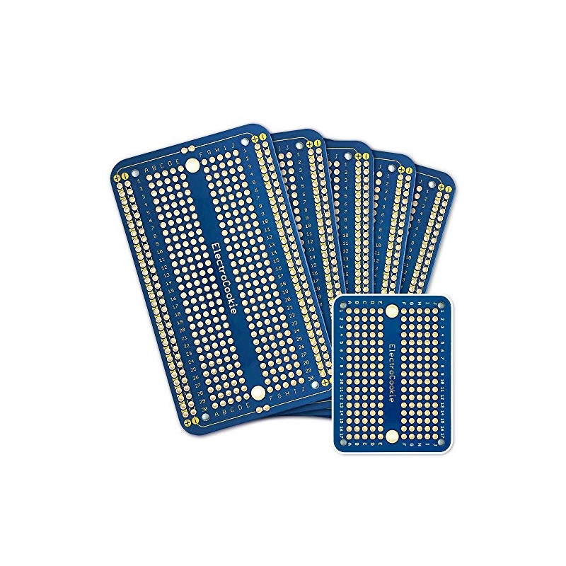 ElectroCookie Solderable Breadboard PCB Board for Electronics Projects Compatible for DIY Arduino Soldering Projects, Gold-Plated (5 Pack + 1 Mini Board, Blue)