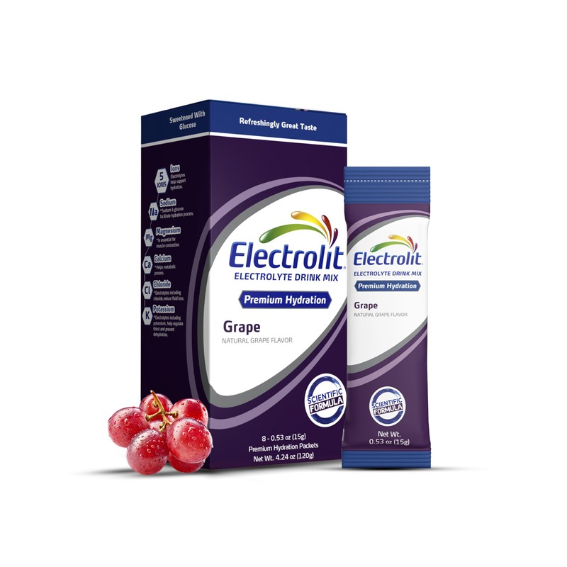 Electrolit Electrolytes Powder Packets, Grape 8 Pack, Powdered Hydration Packets for Dehydration & Rehydration, Post Workout Flavored Hydrating Drink Mix, Gluten Free Daily Water Enhancer Sticks