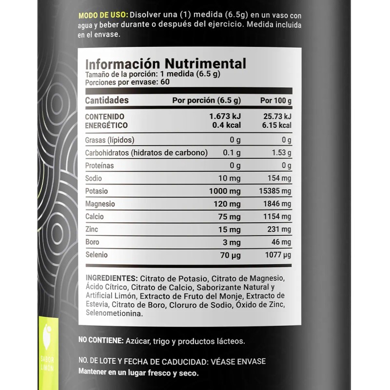 Con su sabor limón fresco y ligero, esta fórmula aporta electrolitos clave como sodio, potasio, calcio y magnesio para mantener el equilibrio corporal. Te ayuda a reponer lo que se pierde con el ejercicio y la actividad física, evitando calambres, fatiga y la sensación de decaimiento.
