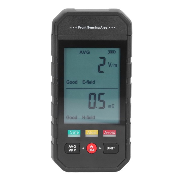 1、PRACTICAL: The electromagnetic radiation tester successfully tests and optimises the compatibility of electric and magnetic field radiation for testing and understanding the current state of electromagnetic radiation in indoor and outdoor environments. 2、RADIATION PROTECTION PRODUCTS: The EMF tester has a built in sensor for electromagnetic radiation, which is processed by a micro controller chip and then displays the radiation value in LCD figures. Based on the test results the electromagnetic radiation can be reasonably handled or effectively avoided. 3、ALARM FUNCTION: The digital multi fields EMF meter can detect both electric and magnetic field radiation in one machine, with an audible and visual alarm, and an automatic alarm when the safety value is exceeded; data lock, one key to lock the radiation value. 4、LCD DISPLAY: The digital electromagnetic field radiation detector includes an LCD with a graphical display of radiation value trends, which allows for a radiation assessment and a thoughtful reminder of whether current radiation levels are safe. 5、WIDE APPLICATION: The electromagnetic radiation detector is stylish, compact and portable for easy one handed operation, making it easy to move around or measure in the field. Applications include home, office, outdoor, laboratory, industrial sites etc.