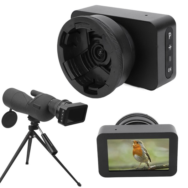 Electronic Eyepiece, Full Colour 4K Telescope Eyepiece Camera, 3 Inch Screen, Low Light Night Vision, Telescopic Camera for Monocular Binoculars, Microscopes, for Bird Watching (Without