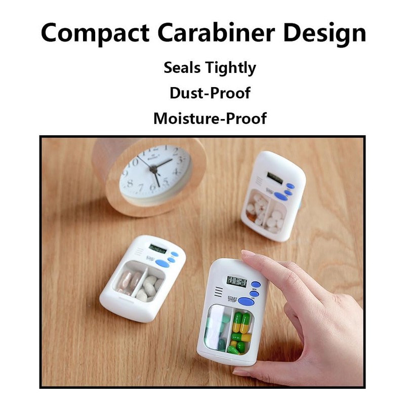 Electronic Pill Timer, Portable Reminder Pill Box 2 Compartments Smart Medication Storage Organizer for Prescriptions Vitamins Supplements