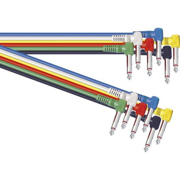 Electrovision Assorted Coloured 0.3m Single Core Shielded 6.35mm Angled Mono Jack Plug to 6.35mm Angled Mono Jack Plug