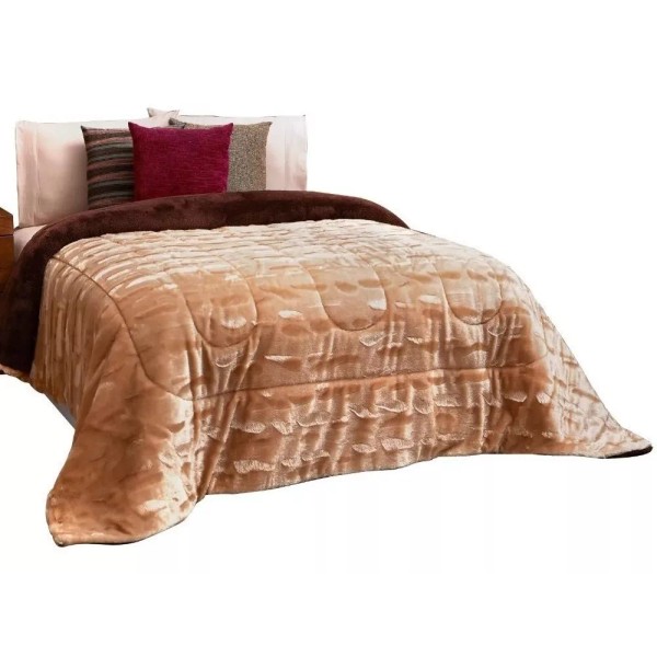 Elefantito Cobertor Con Borrega Matrimonial Champagne Máxima Suavidad