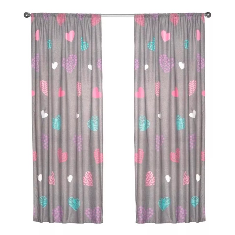 Elefantito Cortinas Amore 2 Paneles De 1.30 X 2.20 Corazones