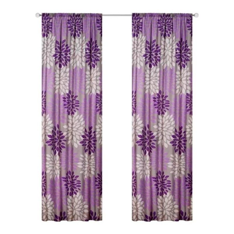 Elefantito Cortinas Chelsea 2 Paneles De 1.30 X 2.20 Lila Flores