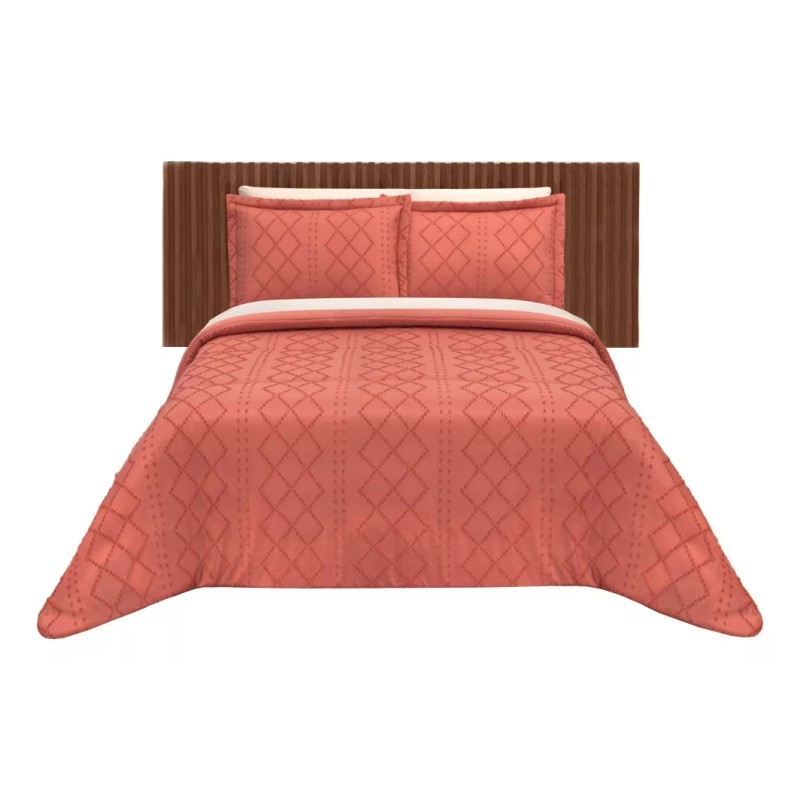 El modelo Cerdeña destaca por sus detalles únicos y su reversibilidad, lo que te permite cambiar el aspecto de tu habitación con solo voltear el edredón, ya que una de las vistas cuenta con rombos en relieve y la otra vista es lisa. Además, incluye 2 fundas de almohadas a juego para completar el look.