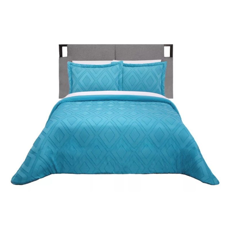Una de las ventajas de este edredón es que es reversible, por lo que podrás cambiar su apariencia con solo darle la vuelta. Por un lado cuenta con diseño de rombos en 3d y por el otro lado la tela es lisa.