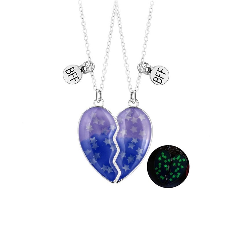 Elefezar Best Friends Necklaces for 2, Heart Broken Luminous Pendant BFF Glow In the Dark Friendship Jewelry 2PCS Dark Blue