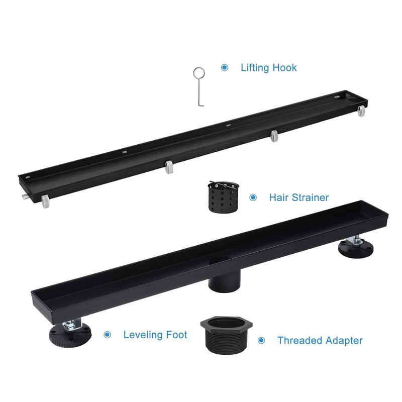 - [Shower Drain Application Range] Linear shower drain can be applied to more scenarios because of large flow drainage design, such as kitchen, bathroom, garage, basement and toilet.