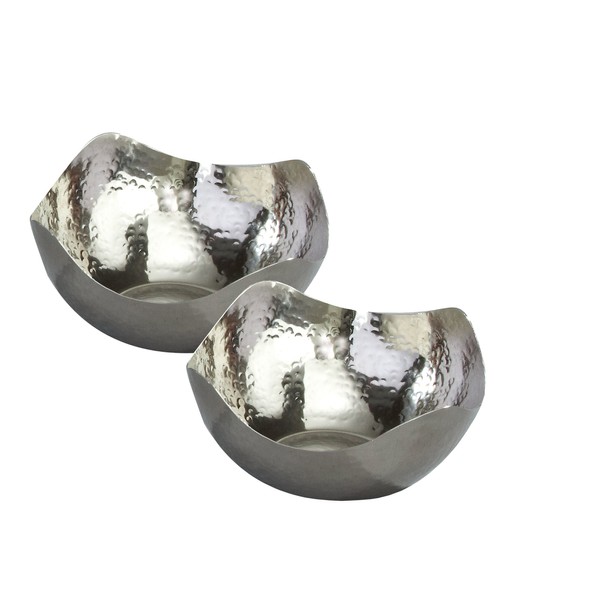 These wave design bowls are hand crafted from stainless steel in a subtle hammered finish. Perfectly sized for side salads or desserts. Also can serve as a nut or candy dish. Well constructed for fine or casual entertaining. A very multi functional bowl. Can be used for food, candy, car or house keys. Elegance at a very affordable price.