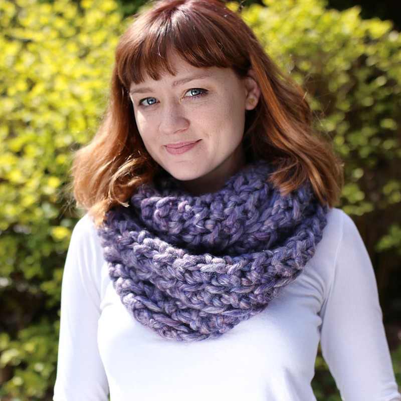 Elegance Outlander Cowl Knit Kit Includes Super Soft Merino Silk Yarn, Big Needles and Written Pattern with Photo Tutorial. Color: Amethyst
