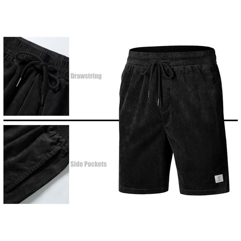 Elegancity Mens Corduroy Shorts Casual Summer Beach Shorts Regular Fit Drawstring Elastic Waist Short Pants with Pockets S-3XL