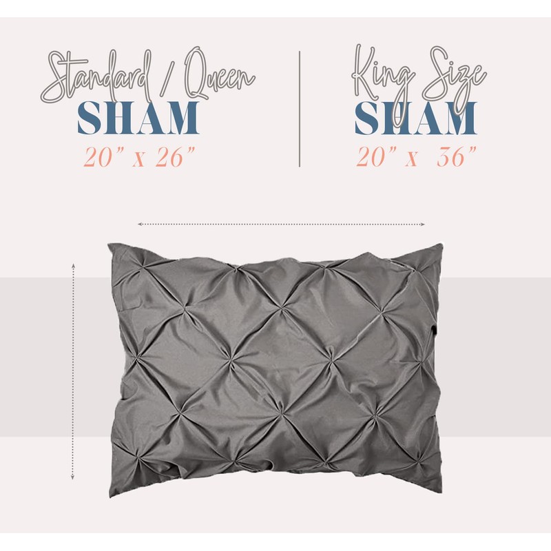 - SIZE- Protect your pillows and update your bedroom look with our pinch pleated shams. Standard/Queen 2-piece set includes: 2-Standard Size Shams, 20” x 26”.