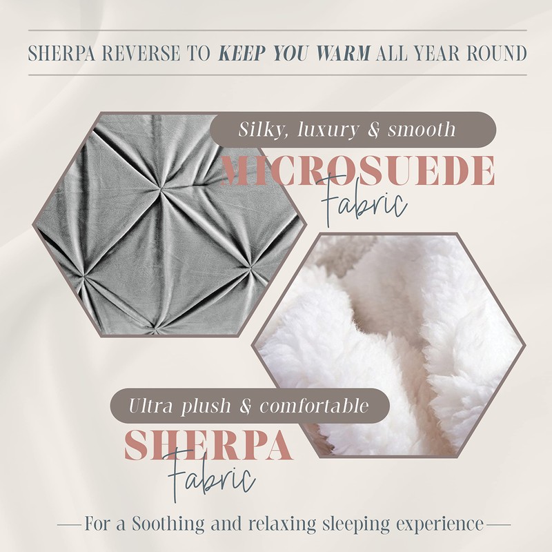 - LUXURY STITCHING- Our Pinch Pleated sherpa features a diamond-stitched pattern to to avoid shifting in your comforter and for an elegant upscale look.