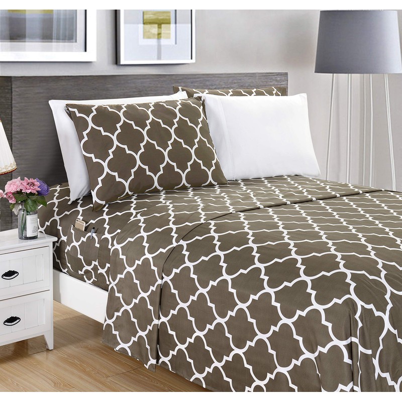 Elegant Comfort 4-Piece Quatrefoil Printed Deep Pocket Bed Sheet Set, Luxurious Silky 1500 Thread Count Bed Sheet Set Ultra Soft Wrinkle Resistant Bedding Set, Twin/Twin XL, Gray