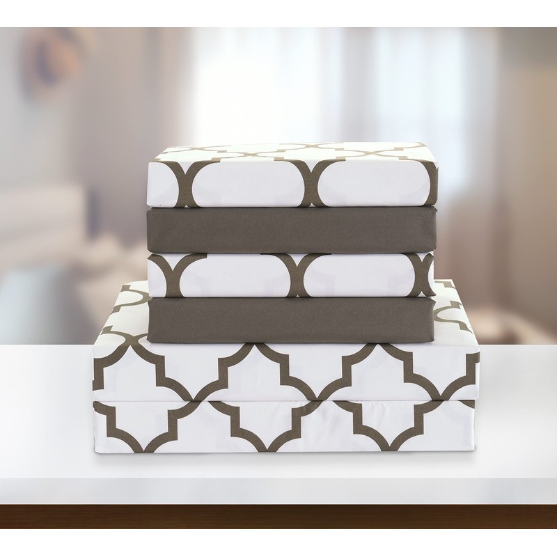 Elegant Comfort 6-Piece Moroccan Trellis Print Sheet Set, Super Cozy, Fade and Wrinkle Resistant, 1500 Premium Hotel Quality Microfiber, Deep Pocket Fitted Sheet with Smart Pockets, King, White