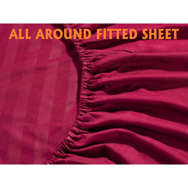 Elegant Comfort Best, Softest, Coziest 6-Piece Sheet Sets! - 1500 Premier Hotel Quality Luxurious Wrinkle Resistant 6-Piece Damask Stripe Bed Sheet Set, Queen Burgundy