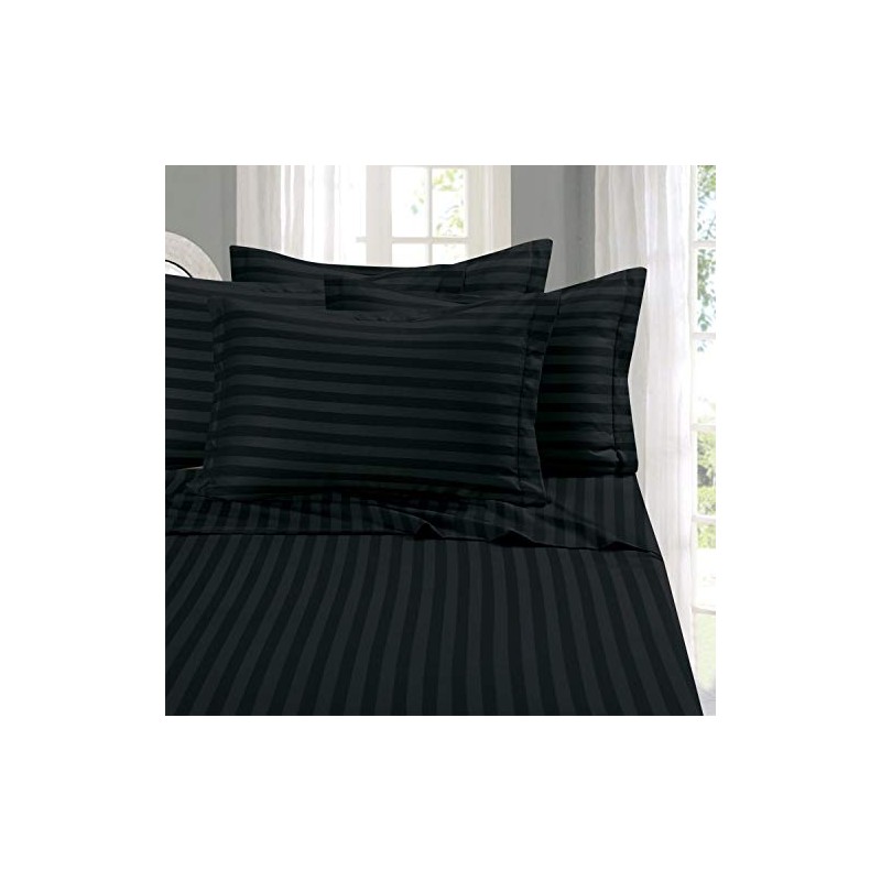 Elegant Comfort Best, Softest, Coziest 6-Piece Sheet Sets! - 1500 Thread Count Egyptian Quality Luxurious Wrinkle Resistant 6-Piece Damask Stripe Bed Sheet Set, Queen Black