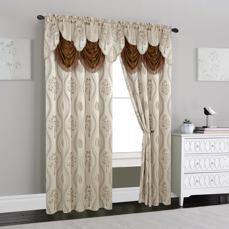 - DESIGN AND STRUCTURE - Includes 2 panels. Each Panel measuring 54 inch wide by 84 inch long with backing and 18" Attached Valance. Easy-to-install design featuring rod pocket style panel - Material: 100% Polyester