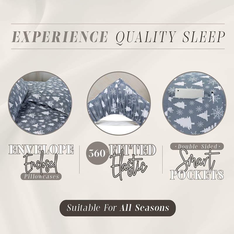 Elegant Comfort Holiday Printed 4-Piece Sheet Set, 1500 Thread Count, Breathable and Super Soft Material, Wrinkle Resistant, Fitted Sheets with Smart Pockets, 4PC Twin, Christmas Tree